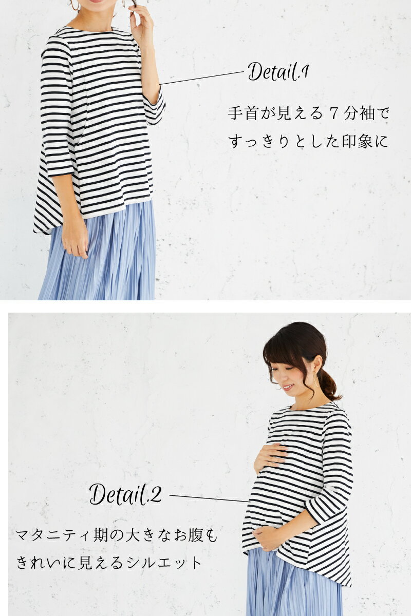 マタニティウエア・授乳服>トップスランキング 1位 (2020/1/21 14:53) 授乳服 マタニティウェア ボーダーフレアーカットソー【ランキング1位】《綿100% コットン100% 授乳服 授乳口付きトップス モーハウス》