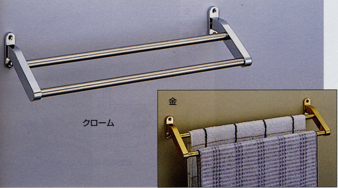 ■メーカー シロクマ 白熊印 ■品名 フラット二段タオル掛け ■品番 BT-41 ■材質 真鍮 ■仕上げ 金,クロームクロームの時パイプ部はステンレス#400です。